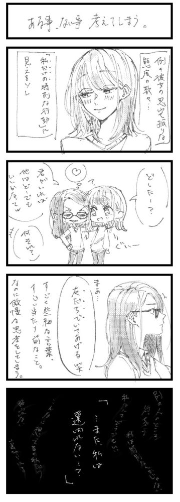 というのも、ふとした…本当に些細な、そして当たり前な彼女の言動に対して、勝手に感じる心の距離に、心臓の芯から冷たくなるような…嫌な感覚に襲われるんです。